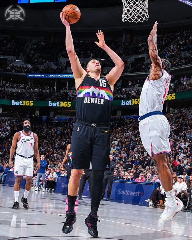 掘金隊的約基奇上半場得到14分和8個籃板,沃特森得到14分,瓦蘭丘納斯得到9分和5個籃板;快船隊的哈登得到15分和4次助攻,科林斯得到13分,萊納德得到10分和4次助攻。