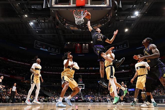 本場比賽中,湖人的替補(bǔ)中鋒賈克森-海斯(Jaxson Hayes)也算是保持了自己最近一段時間的不俗狀態(tài)了。海斯全場出場13分34秒,投籃5中4,罰球2中2,以極高的效率得到了10分3籃板1助攻1搶斷的數(shù)據(jù),正負(fù)值為-3。海斯的出場時間依然比較有限,但是他還是展現(xiàn)出了相當(dāng)不錯的進(jìn)攻效率和籃下終結(jié)能力,他也能夠利用自己在運(yùn)動能力方面的優(yōu)勢完成籃下得分,他與盧卡-東契奇(Luka Doncic)之前看起來也是已經(jīng)產(chǎn)生了不小的默契。海斯在防守端的表現(xiàn)不算特別突出,但是也算是保持了基本的水準(zhǔn)??傮w來看,海斯的表現(xiàn)雖然不能算是特別突出,但是也算是很好地扮演了替補(bǔ)中鋒的角色,為球隊(duì)第二陣容穩(wěn)住了局面。