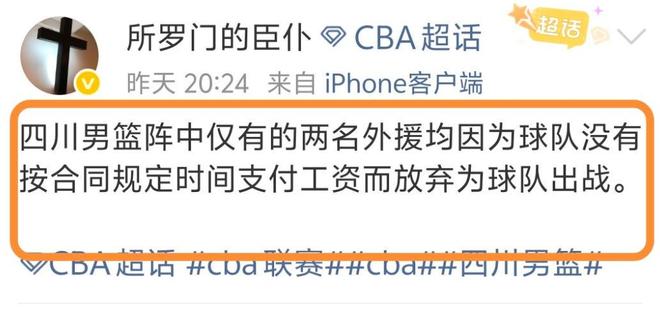 賽后,四川隊僅有的兩名外援也因為拖欠工資而放棄為球隊出戰(zhàn)也被推上了熱搜。