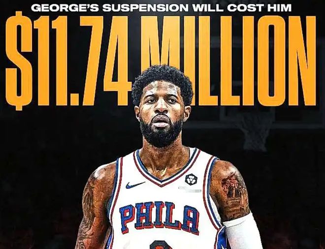 根據(jù)ESPN薪資專家Bobby Marks的計(jì)算,喬治本賽季年薪高達(dá)5170萬(wàn)美元,25場(chǎng)禁賽將使他損失約1174萬(wàn)美元的薪水。
