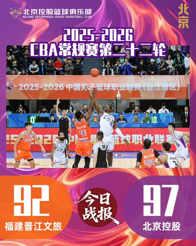 2月1日,北控男籃攜三連勝之威,開啟南下之旅。在首場與福建晉江文旅的對決中,北控男籃面對對手的猛烈攻勢,有條不紊,沉著應對,長時間保持領先優(yōu)勢,最終以97:92力克對手,豪取四連勝。
