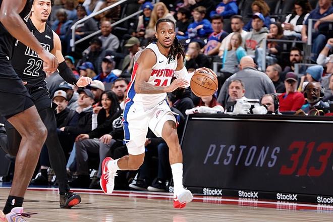 詹金斯出生于2001年8月,現(xiàn)年24歲,身高191cm,體重84kg,是去年NBA選秀大會中的落選秀。上賽季詹金斯就以雙向合同球員的身份效力于活塞。在上賽季的NBA常規(guī)賽中,詹金斯總共只出場7次,場均出場時間達到了3.3分鐘,場均數(shù)據(jù)為1分0.3籃板0.4助攻,還有0.1次失誤和0.3次犯規(guī),投籃命中率30%,三分命中率14.3%,罰球命中率0%。到了季后賽,受制于雙向合同球員的身份,詹金斯無法完成出場。本賽季開季至今,詹金斯在前48場比賽中總共出場40次,場均出場時間達到了16.8分鐘,場均數(shù)據(jù)為8分1.8籃板3.4助攻0.9搶斷0.2蓋帽,還有1.4次失誤和1.3次犯規(guī),投籃命中率42.6%,三分命中率38.8%,罰球命中率79.1%。