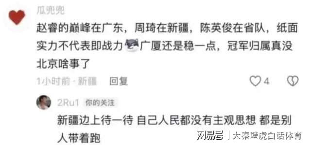 “趙睿的巔峰在廣東……冠軍歸屬真沒北京啥事了…”,沒想到引起趙睿破防,這名中國男籃隊長意外地在該球迷評論下方回復: