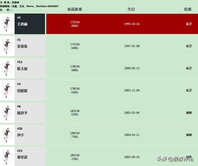 前鋒:楊舒予,孫宇,李星諾,張茹,羅欣棫,張梓涵,唐子婷