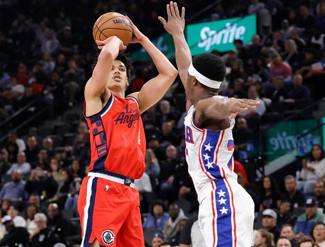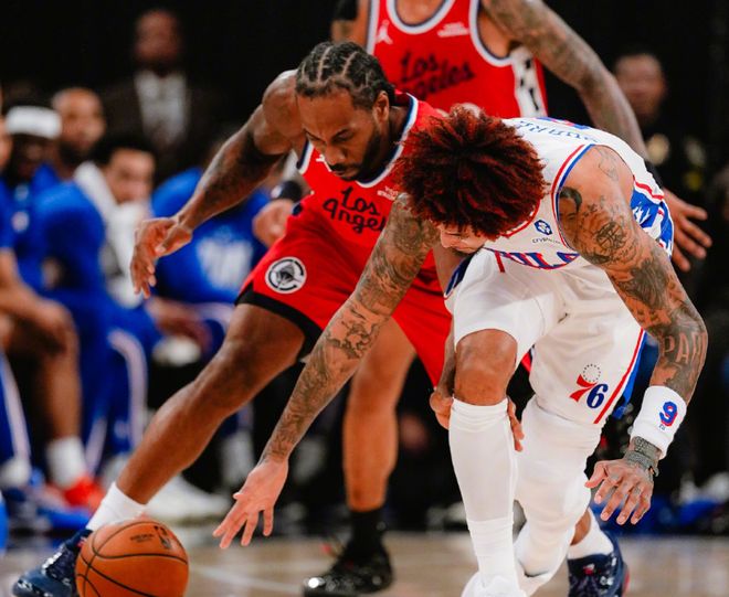 76人最近狀態(tài)也很好,特別是大帝恩比德。在剛剛過(guò)去的1月份,恩比德場(chǎng)均29.7分8.4籃板4.6助攻,投籃命中率也拉升到53.7%,最近7場(chǎng)比賽,恩比德場(chǎng)均34.1分9.3籃板5.4助攻,昔日MVP回歸!不過(guò)76人這邊,喬治因?yàn)猷舅幈宦?lián)盟停賽25場(chǎng)。更有趣的是,自從哈登離開(kāi)76人后,還沒(méi)和恩比德正式對(duì)陣過(guò),前有王不見(jiàn)王,現(xiàn)有“登不見(jiàn)帝”。本場(chǎng)依舊是小卡獨(dú)自帶隊(duì),回顧一下比賽,開(kāi)場(chǎng)恩比德撤步中投,馬克西+烏布雷連中三記三分打停快船!暫?;貋?lái),巴洛又連續(xù)強(qiáng)攻,76人打了5分鐘,拉開(kāi)16分分差!