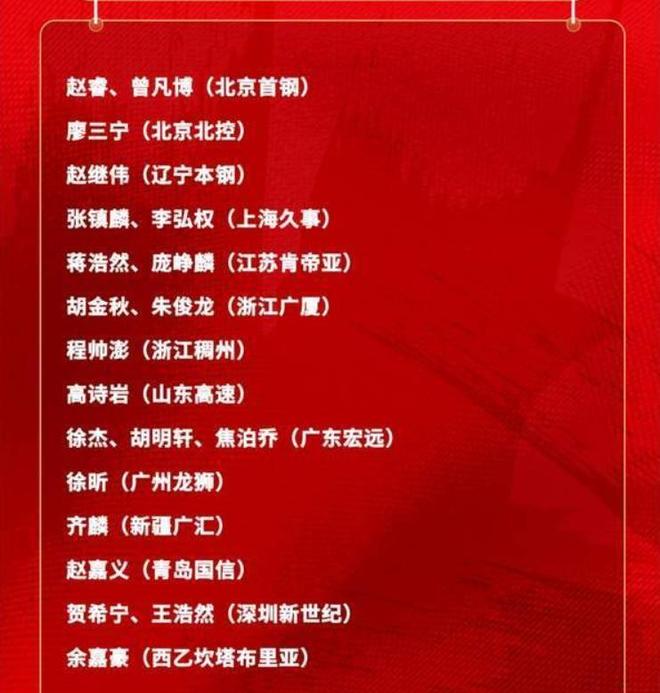 入選集訓(xùn)隊(duì)的21人分別是趙睿、曾凡博、趙繼偉、張鎮(zhèn)麟、李弘權(quán)、蔣浩然、龐崢麟、胡金秋、朱俊龍、程帥澎、高詩(shī)巖、徐杰、胡明軒、焦泊喬、徐昕、齊麟、趙嘉義、賀希寧、王浩然、余嘉豪。這21人集訓(xùn)名單中趙繼偉、徐杰和齊麟再次入選讓人意想不到,郭士強(qiáng)的愛(ài)徒李祥波沒(méi)能入選大家可以理解,周琦因?yàn)檠蹅膯?wèn)題不僅缺席了首鋼隊(duì)大量的比賽,同時(shí)也缺席國(guó)家隊(duì)集訓(xùn)隊(duì)這還是讓很多人沒(méi)有想到的,從這里可以看出他的眼傷確實(shí)比較嚴(yán)重。