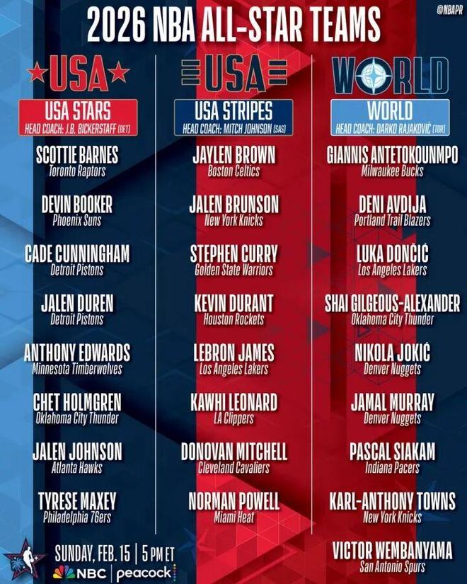 全明星分組出爐!詹杜庫再同隊