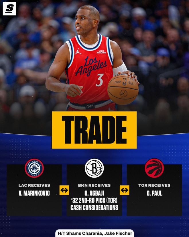 北京時(shí)間2月5日,洛杉磯快船終于送走了40歲的克里斯-保羅,猛龍、籃網(wǎng)、快船三方交易中CP3被送往寒冷的多倫多,這筆交易中猛龍將阿巴基、2032年次輪簽送到籃網(wǎng),快船送給籃網(wǎng)350萬現(xiàn)金騰出一個(gè)空間,籃網(wǎng)幫快船吃掉保羅的薪金空間。