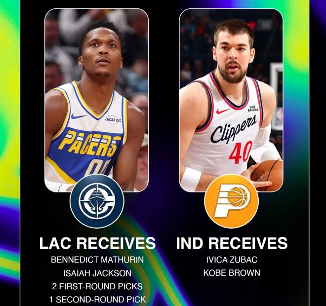 馬瑟林、以賽亞·杰克遜,附加29年步行者無保護(hù)首輪、26年步行者首輪(前4順位、10-30順位保護(hù),如果沒有兌現(xiàn),則變成31年無保護(hù)首輪)、28年獨行俠次輪