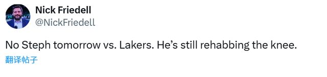 兩周前,庫里在一次個(gè)人訓(xùn)練中舊傷復(fù)發(fā)。他因此缺席了客場對(duì)陣明尼蘇達(dá)森林狼的比賽,之后又帶傷出戰(zhàn)了兩場,最終在主場不敵活塞的比賽第三節(jié),因傷勢(shì)加重提前退場。當(dāng)時(shí)他一瘸一拐地走回更衣室,此后便一直單獨(dú)進(jìn)行康復(fù)訓(xùn)練,沒有參與球隊(duì)合練。球隊(duì)依舊將庫里的出戰(zhàn)狀態(tài)列為“每日觀察”。