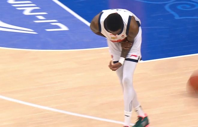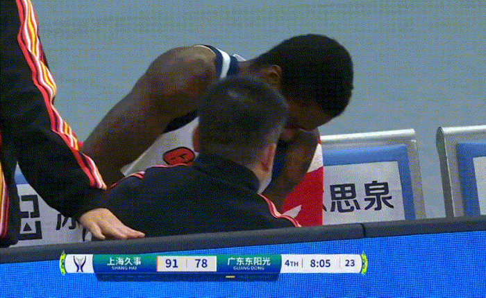在比賽第四節(jié)開局階段,薩姆納在一次進(jìn)攻回合中,繞掩護(hù)時(shí)胳膊被崔曉龍和王洪澤前后夾擊別了一下,直接下場缺席了后面的比賽。
