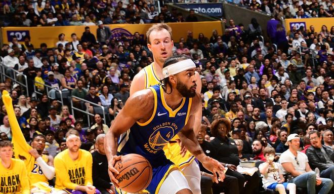 勇士被迫叫了暫停??霞{德和里夫斯一塊上場之后,湖人打出9比2的小高潮,讓球隊又掌握了主動權(quán)??霞{德在這段時間里發(fā)揮了不小的作用。