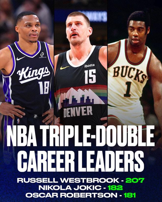 并且約基奇僅花費兩節(jié)半時間就拿下三雙,這樣一來,約基奇生涯三雙次數(shù)來到182次,正式超越大O奧斯卡羅伯特森獨占NBA歷史三雙榜第二。