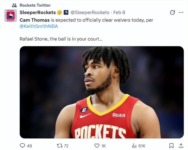 實際上在托馬斯被籃網(wǎng)裁掉后,休斯頓火箭隊也是他的潛在下家之一,而火箭距離硬帽只有125萬,火箭最高只能開出125萬的底薪,此前很多人都覺得托馬斯是因為薪水沒有加盟火箭,實際上根本不是。