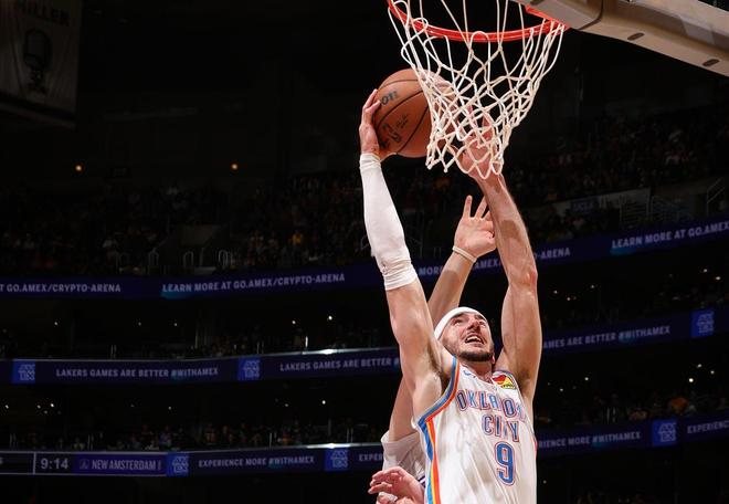 這又是湖人想念卡魯索的一天。北京時(shí)間2月10日,雷霆以119比110擊敗湖人??斔髅鎸?duì)舊主表現(xiàn)出色,替補(bǔ)24分鐘8投7中,三分4中3、罰球1中0,砍下17分1籃板2助攻1搶斷,正負(fù)值+19為全場(chǎng)最高。