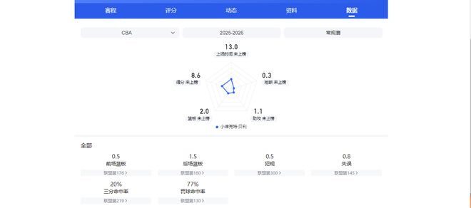 納托爾作為新疆男籃的后場核心,第一階段場均能送出3.6次助攻,但場均會出現(xiàn)2.3次失誤,助攻失誤率較高。而作為外援,他第一階段的罰籃命中率只有51.4%,該數(shù)據(jù)甚至不如絕大多數(shù)本土后衛(wèi)。