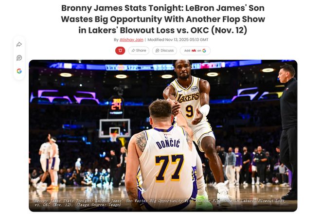 父子絕境,詹姆斯被短暫下放,布朗尼0分1假摔,還遭花邊丑聞纏身