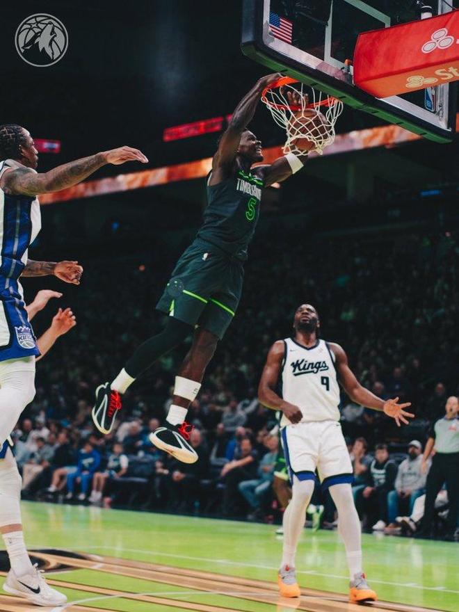 中場休息回來,國王連續(xù)三節(jié)單節(jié)轟下30+得分,森林狼也是回暖第二次單節(jié)轟下30+得分。森林狼單節(jié)31-30凈勝1分,前三節(jié)結(jié)束森林狼92-91領(lǐng)先國王。末節(jié)比賽,森林狼再度單節(jié)轟下30+得分,且限制國王全場首次單節(jié)得分不足20分,森林狼末節(jié)32-19凈勝13分,最終森林狼124-110大勝國王。