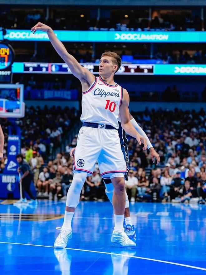 快船隊(duì)神射手博格丹博格達(dá)諾維奇,在此役表現(xiàn)驚艷。博格達(dá)諾維奇替補(bǔ)上場(chǎng)37分鐘,14投8中,三分球8投5中,0罰球,得到了21分3板3助攻4搶斷的全能數(shù)據(jù),只有1次失誤。博格達(dá)諾維奇以57%的命中率砍下了高分,還以63%的命中率投進(jìn)了全場(chǎng)第二多的5記三分球。在進(jìn)攻端火力全開的博格達(dá)諾維奇,還是此戰(zhàn)的搶斷王。防守端,博格達(dá)諾維奇的存在感很強(qiáng)。