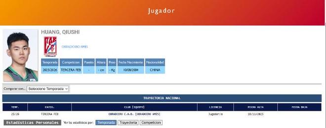 在奧布拉多伊洛隊(duì)的官網(wǎng)上,黃秋實(shí)的條目和資料已經(jīng)可以查到。