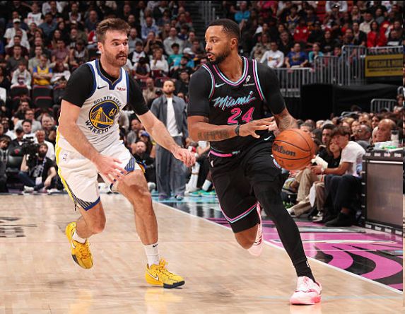 缺少了核心球員的勇士一開(kāi)始就不在狀態(tài),熱火開(kāi)局就轟出了23-9的攻擊波,隨后勇士追分,熱火首節(jié)領(lǐng)先9分。在第二節(jié),雙方展開(kāi)拉鋸,勇士打出連續(xù)的反擊轟出17-4的攻擊波將比分追平。
