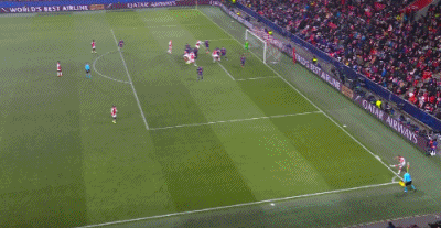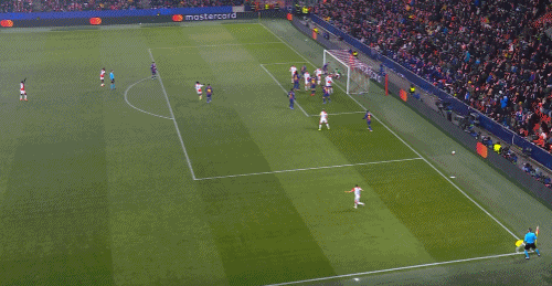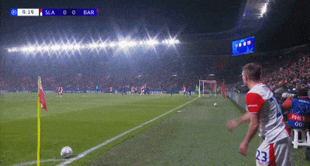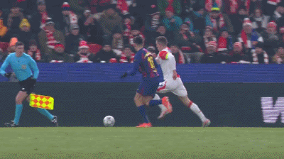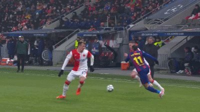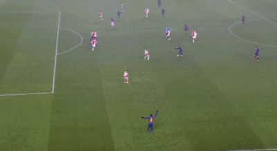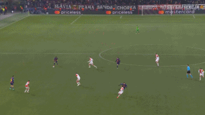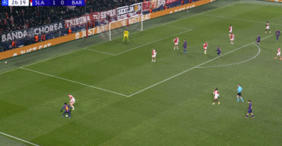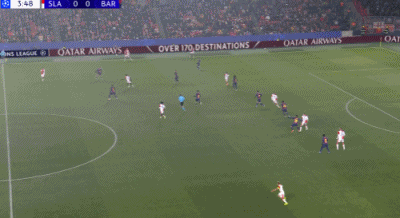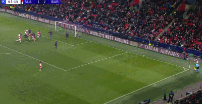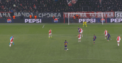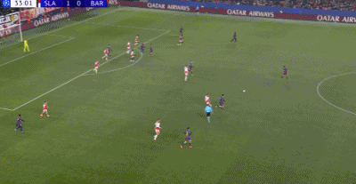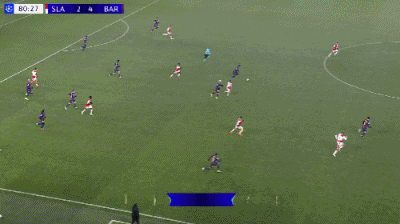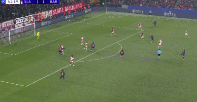 第34分鐘,德容直塞,費(fèi)爾明小角度抽射破門(mén),巴薩1-1布拉格斯拉維亞
