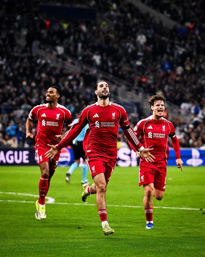 相比巴薩的起伏,利物浦客場(chǎng)挑戰(zhàn)馬賽表現(xiàn)相當(dāng)出色。斯洛特的球隊(duì)不急于提速,而是耐心消耗對(duì)手。比賽一開(kāi)打,紅軍就反客為主,先是?;倏吮淮翟轿?、擊中立柱,屬于運(yùn)氣不佳;不過(guò)場(chǎng)上的節(jié)奏牢牢控制在利物浦腳下。