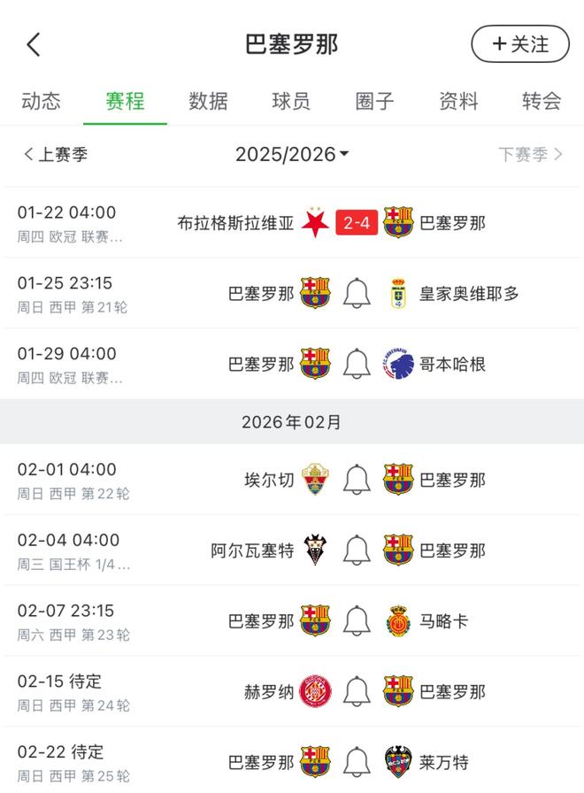 巴薩未來一個(gè)月賽程