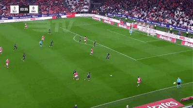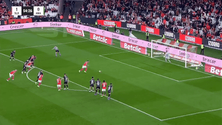 比賽開(kāi)始后,主場(chǎng)作戰(zhàn)的本菲卡牢牢控制場(chǎng)上的局面,但是卻是雷聲大雨點(diǎn)小,始終無(wú)法破門,直到比賽第42分鐘,機(jī)會(huì)終于出現(xiàn)??ú祭瓲査统雒顐鳎练蚶舅箵岦c(diǎn)破門,本菲卡1-0領(lǐng)先。