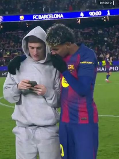 鏡頭捕捉到有趣一幕:因傷缺陣的加維賽后跑進(jìn)球場,向亞馬爾展示手機(jī)內(nèi)容,兩人隨即開懷大笑。外界普遍認(rèn)為,他展示的正是皇馬在里斯本2-4不敵本菲卡的戰(zhàn)報(bào)。