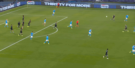 你說這是有意為之,其實(shí)也算不上,畢竟沒有了諾阿-朗和內(nèi)雷斯,那不勒斯進(jìn)行推進(jìn)的方法其實(shí)已經(jīng)非常有限,除了直接找赫伊倫,無非就是靠麥克托米奈進(jìn)行后上沖擊: