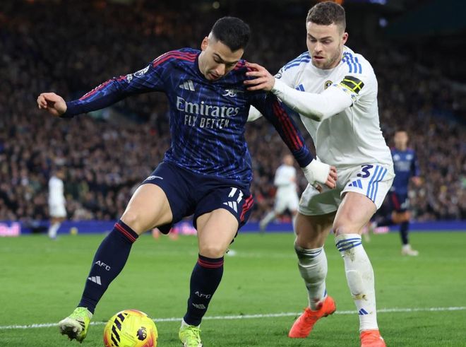 下半場易邊再戰(zhàn),雖然利茲聯(lián)率先進(jìn)行換人調(diào)整,但沒有任何作用。面對阿森納越來越犀利的進(jìn)攻,利茲聯(lián)根本守不住。替補(bǔ)上場的馬丁內(nèi)利在第69分鐘助攻哲凱賴什破門。哲凱賴什打破聯(lián)賽進(jìn)球荒。最后時(shí)刻,替補(bǔ)上場的兩名球員攜手制造進(jìn)球,厄德高助攻熱蘇斯進(jìn)球殺死比賽。最終的比分定格為4-0,阿森納橫掃利茲聯(lián)。