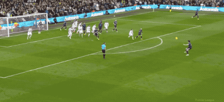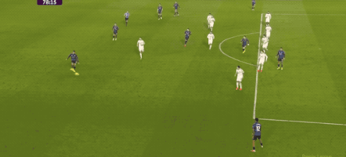 第79分鐘,輪到廷貝爾在右路傳中了,熱蘇斯近在咫尺的頭球頂?shù)糜行┱?,達(dá)爾洛奮力將球托出橫梁。