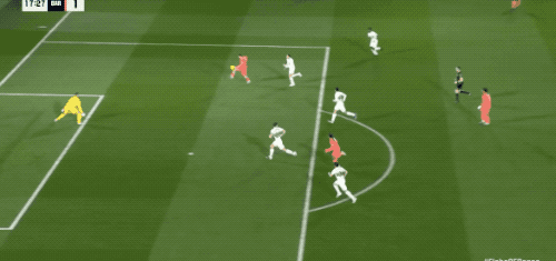 奧爾莫的射門擊中橫梁后,第29分鐘,巴薩習(xí)慣性防線前壓,阿爾瓦羅·羅德里格斯反越位成功,冷靜將球打進(jìn)。