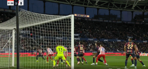 第68分鐘,巴勃羅-馬丁內斯超遠距離打門嘗試,皮球高出球門