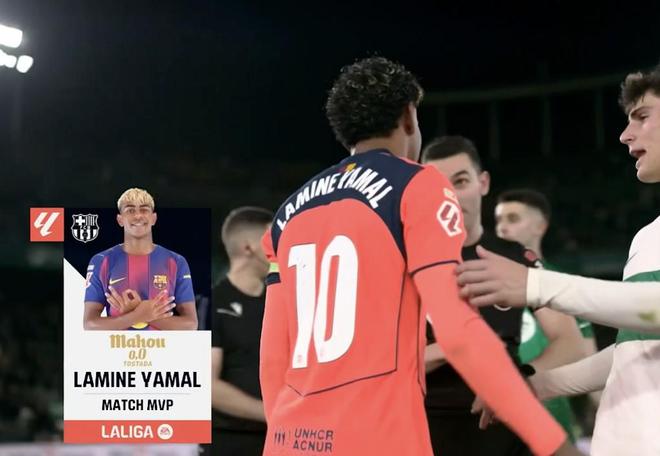 西甲第22輪,巴塞羅那客場3-1擊敗埃爾切,此役打入一球的巴薩前鋒亞馬爾當選西甲官方全場最佳球員。