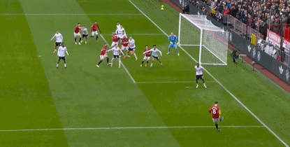 第19分鐘,B費定位球傳中,卡塞米羅頭槌破門,曼聯(lián)打破僵局,1-0!