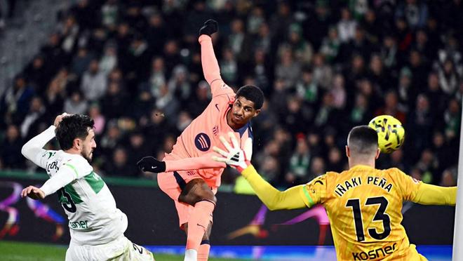 此后,巴薩完全掌控節(jié)奏,費(fèi)蘭·托雷斯與奧爾莫接連制造威脅。反觀主隊(duì)埃爾切,在前25分鐘竟無一腳射門,直到第25分鐘才由阿爾瓦羅·羅德里格斯反越位成功,低射扳平比分。