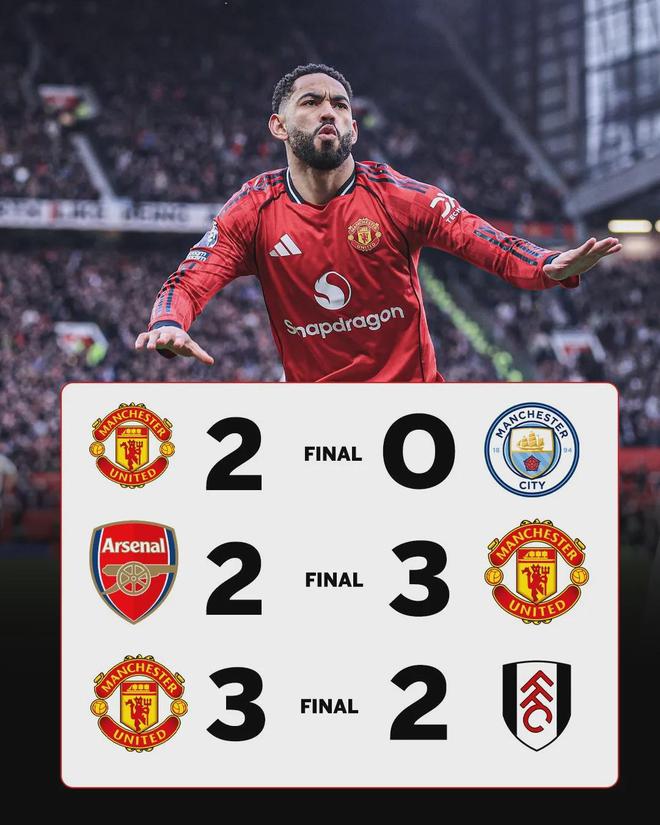 曼聯(lián)在卡里克麾下三戰(zhàn)全勝,先后擊敗曼城、阿森納和富勒姆。尤其連續(xù)戰(zhàn)勝聯(lián)賽前兩名的球隊,展示曼聯(lián)在強強對話中的競爭力。值得一提的是,曼聯(lián)本賽季在控球率≤45%的比賽中保持全勝,而控球率>45%時勝率僅18.75%。卡里克顯然找到了曼聯(lián)的取勝鑰匙。