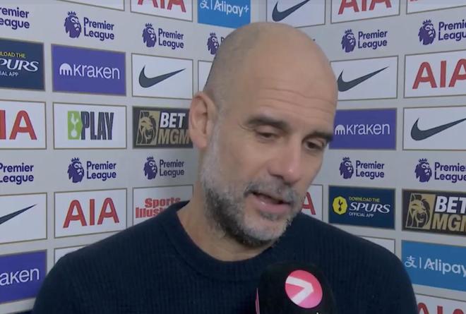 英超第24輪,曼城客場2-2戰(zhàn)平熱刺,賽后,曼城主帥瓜迪奧拉接受了Viaplay Fotball的采訪。