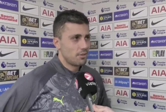 英超第24輪,曼城客場2-2戰(zhàn)平熱刺,賽后,曼城中場羅德里接受了Viaplay Fotball的采訪。