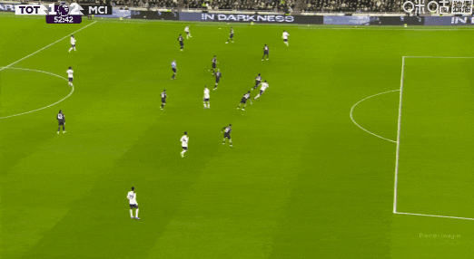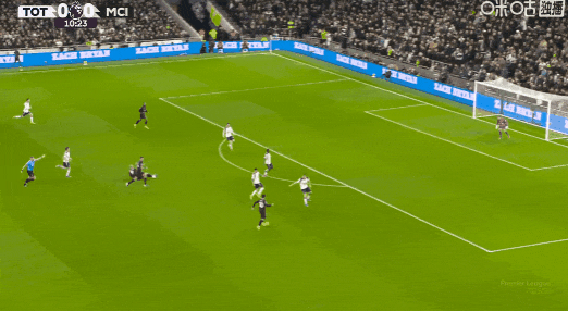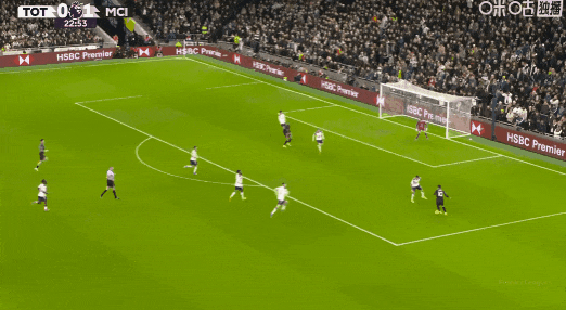 第52分鐘,索蘭克突入禁區(qū)破門,VAR介入后確認(rèn)進(jìn)球有效!熱刺1比2曼城!