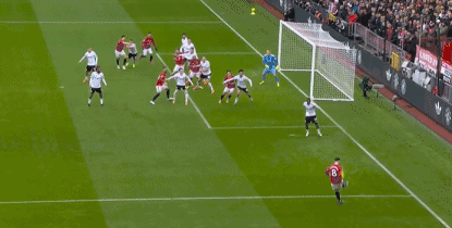 第19分鐘,曼聯(lián)球員B費主罰右側(cè)任意球傳中,卡塞米羅頭球破門,曼聯(lián)1-0領(lǐng)先。