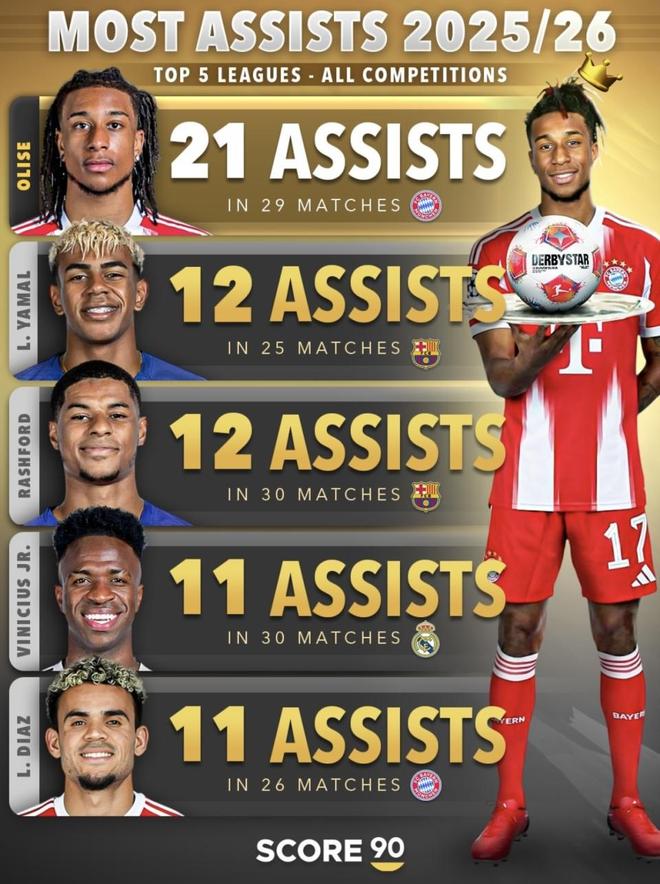 最近Score90做了五大聯(lián)賽、所有賽事口徑的助攻盤點(diǎn)。2025/26賽季還在進(jìn)行中,奧利塞這段時(shí)間的表現(xiàn)已經(jīng)把“助攻王”的氣勢(shì)打出來(lái)了:他不只是暫時(shí)領(lǐng)跑,而是用連續(xù)不斷的輸送把領(lǐng)先優(yōu)勢(shì)先拉開,節(jié)奏也明顯更快。更關(guān)鍵的是,這種表現(xiàn)放到更長(zhǎng)的時(shí)間軸里也站得住——他已經(jīng)進(jìn)入近些年單賽季助攻王的序列,和那些曾經(jīng)把助攻做到極致的名字并列。賽季接下來(lái)怎么走,他能不能把這種節(jié)奏一直保持下去,是這組內(nèi)容最值得關(guān)注的地方。(數(shù)據(jù)截至北京時(shí)間2026年1月25日)
