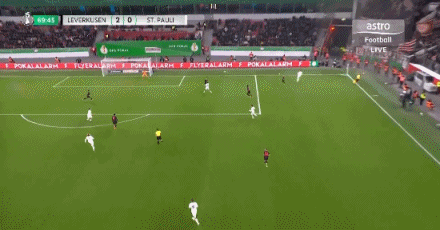 第63分鐘,擴(kuò)大比分!??藫岦c(diǎn)低射破門,勒沃庫森2-0圣保利