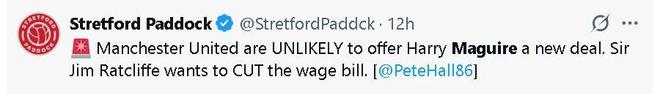但據(jù)其報道,如果馬奎爾愿意接受大幅降薪,每周少拿約8萬英鎊,并同意俱樂部新約的其他條件,就仍有可能留在球隊。在報道中,英媒所說的是:if the England international is willing to take a substantial pay cut of about £80,000 a week,而社媒忽略了「if」的假設(shè)前提,并且將每周降薪8萬英鎊誤解為「降薪至8萬英鎊」。