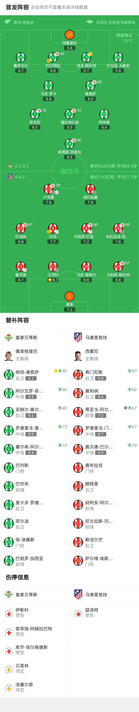 北京時間2月6日西班牙國王杯 1/4決賽,皇家貝蒂斯對陣馬德里競技。上半場,漢茨科率先破門。魯杰里助攻,小西蒙尼建功。巴里奧斯傳球,盧克曼首秀破門。下半場,盧克曼助攻,格列茲曼得分。終場前,格列茲曼射門被撲出,阿爾馬達補射得手。全場比賽結束,馬競客場5-0大勝貝蒂斯,成功晉級國王杯4強。