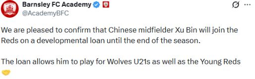 不過,博主英國足球那點事分析,“根據(jù)官方公告,徐彬加盟的是巴恩斯利青訓學院,并不是巴恩斯利一線隊。按這說法應該踢不了英甲?!?/p>