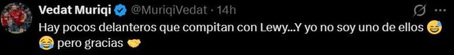 這位科索沃國腳也在社媒幽默地回應(yīng)道:“能和萊萬相提并論的前鋒沒幾個……而我可不是其中之一啊,但還是謝謝了?!?/p>