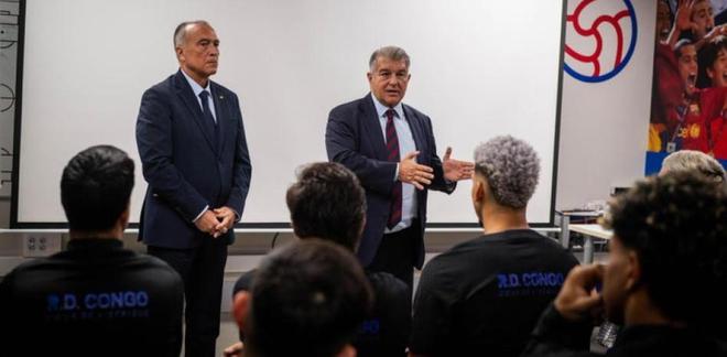 當(dāng)?shù)貢r間本周二的中午,已辭去主席職務(wù)、準(zhǔn)備重新參選的拉波爾塔造訪巴薩體育城,向一線隊球員與教練組告別,并發(fā)表講話。